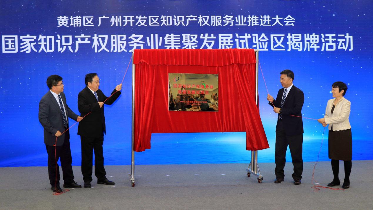 當天下午,國家知識產權局規劃發展司司長畢囡現場宣讀了《國家知識產權局辦公室關於同意在廣東省廣州開發區設立國家(jiā)知(zhī)識產權服(fú)務業集聚發展試驗區的函(hán)》,國家知識產權局副局(jú)長甘紹寧、規劃發展司(sī)司長畢囡、廣東省知識產權局局長馬憲民、黃埔區人大常委會主任、黨組書記(jì)崔世剛共同為“廣州(zhōu)開發區國(guó)家知識(shí)產權服務業集聚發展試驗區”揭牌。