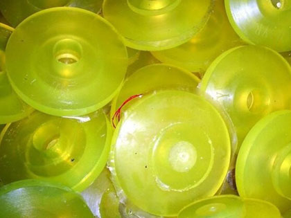 4、 耐油。聚氨酯彈性體是一種強(qiáng)極性高(gāo)分子化合物,和非極性礦(kuàng)物油的親和性小,在燃料油和機械油中幾乎不受侵蝕。